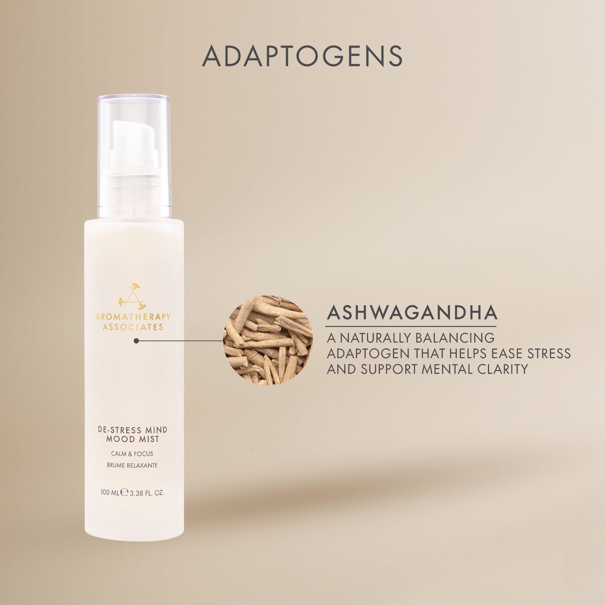 Enhanced with adaptogenic Ashwagandha, known to help reduce stress and support mental clarity, the alcohol-free mist surrounds you with a long-lasting scent that restores calm and focus, transforming any moment into a restorative ritual that resets your mood and restores balance.