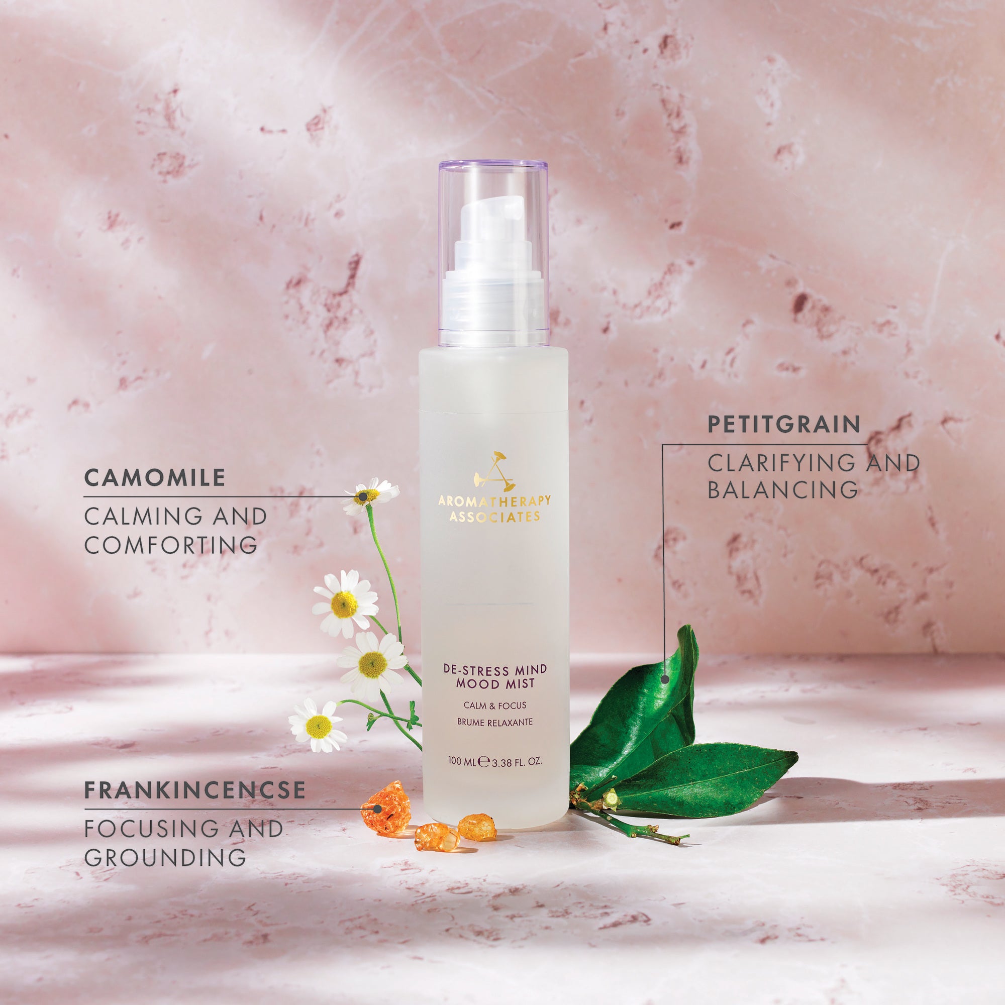 Hand-blended with relaxing Camomile, clarifying Petitgrain and grounding Frankincense, this 100% natural essential oil blend harnesses the power of aromatherapy to ease stress and rebalance the mind.