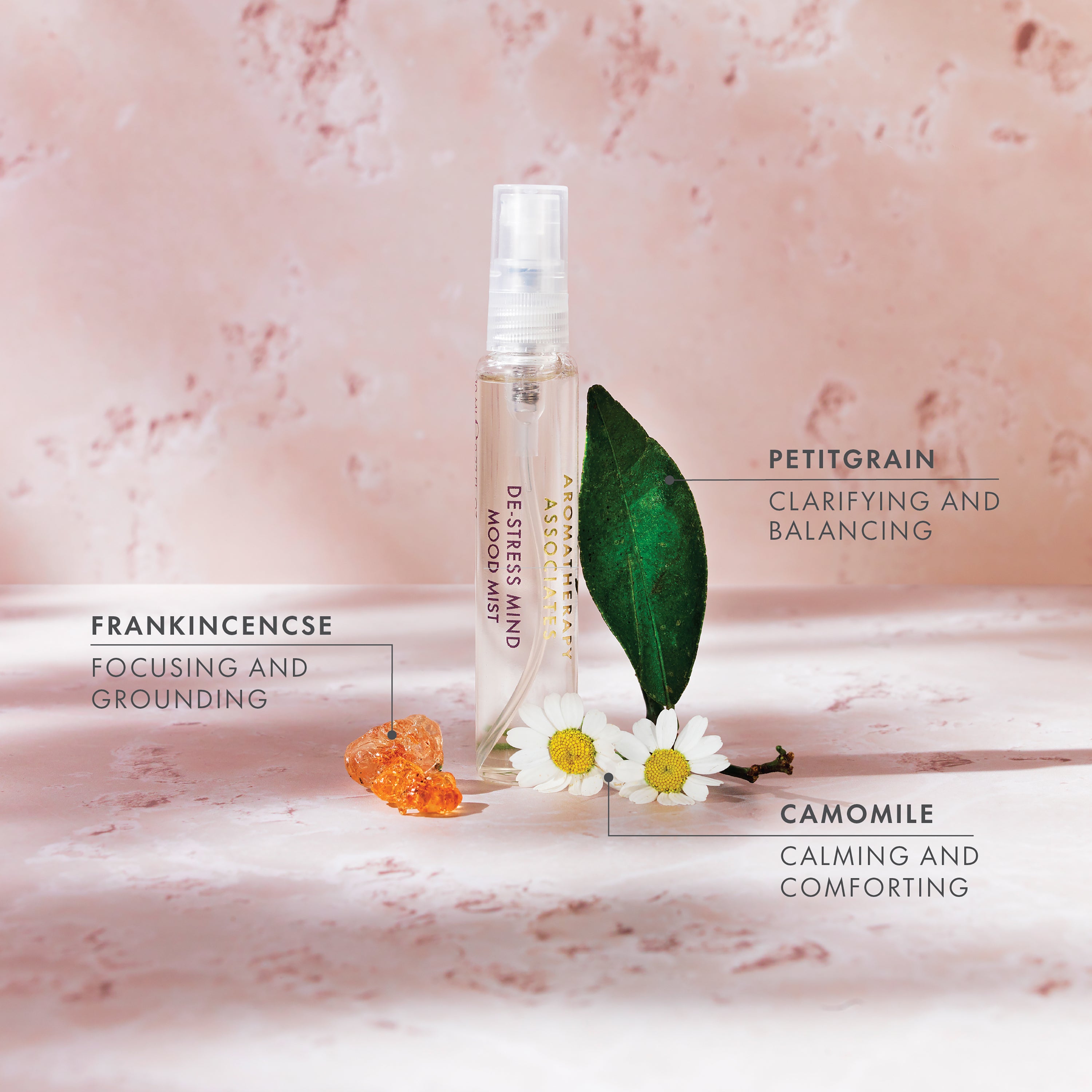 Hand-blended with relaxing Camomile, clarifying Petitgrain and grounding Frankincense, this 100% natural essential oil blend harnesses the power of aromatherapy to ease stress and rebalance the mind. Enhanced with adaptogenic Ashwagandha, known to help reduce stress and support mental clarity, the alcohol-free mist surrounds you with a long-lasting scent that restores calm and focus, transforming any moment into a restorative ritual that resets your mood and restores balance.